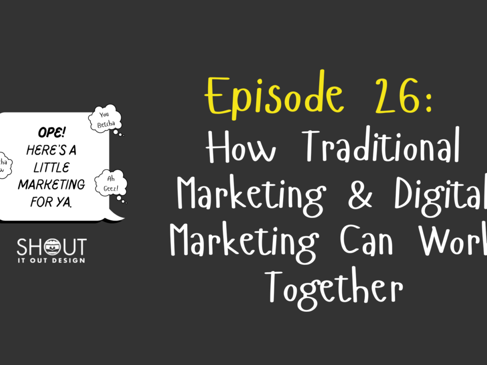 Shout It Out Design team member Rachel returns as a guest on the podcast, and joins John, Ellen, and Elli at the Mid-America Restaurant Expo in Columbus, OH for a discussion on how traditional marketing can work in tandem with digital marketing to help small businesses grow.